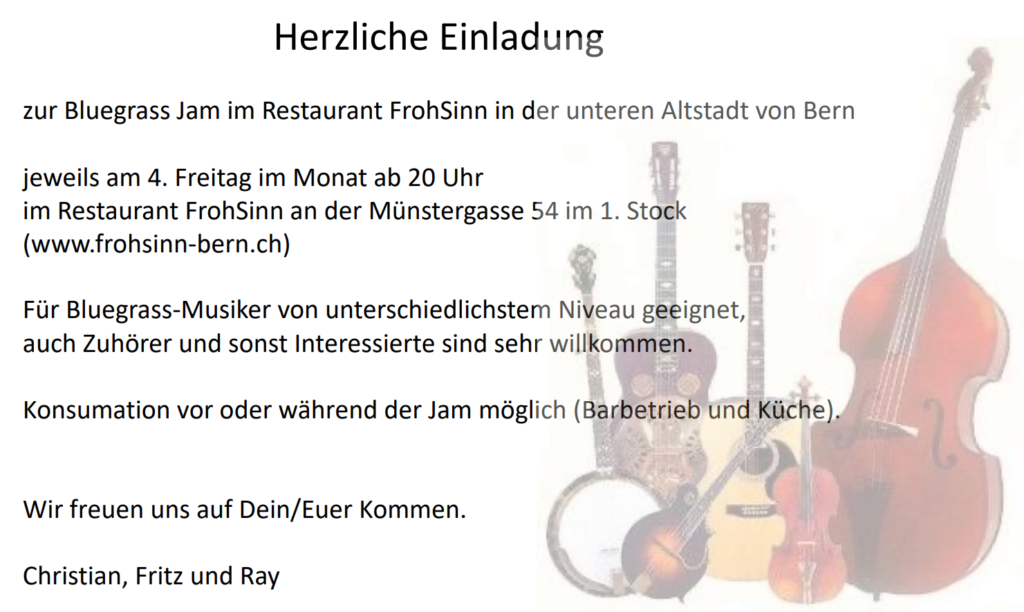 Bluegrass Jam im Restaurant FrohSinn, Münstergasse 54, 3011 Bern