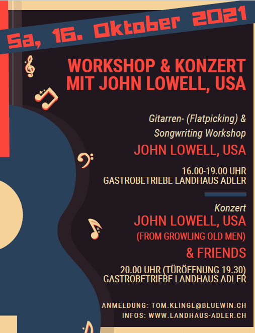 Konzert mit John Lowell & Friends, Gastrobetriebe Landhaus Adler, Dorfstrasse 16, 3714 Frutigen / BE