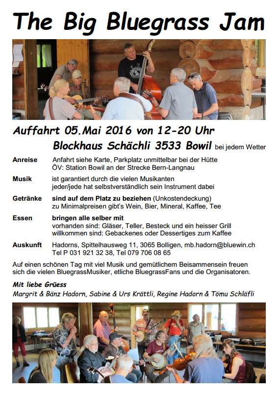 Samstag, 23. Mai 2015 am 16. Spring Bluegrass Festival in Willisau