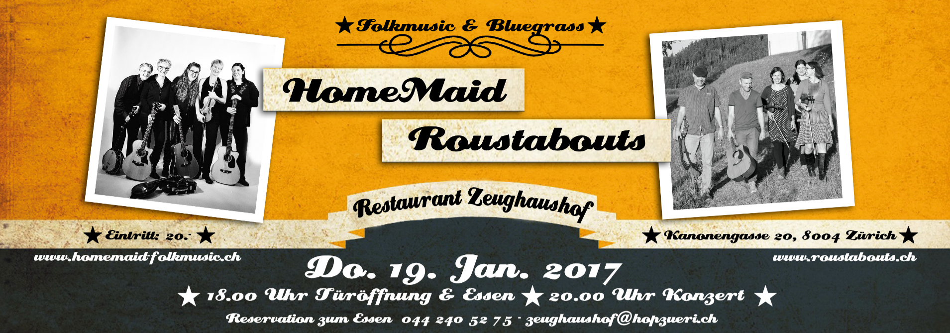 We are a small group of musicians who play acoustic music in the American old-time style – think Appalachian string band music with fiddle, banjo, guitar, mandolin and stand-up bass. We hold a monthly jam in the Wiedikon neighborhood of Zurich and we invite you to join us to play, learn or listen. If you play one of the instruments above and you can pick up tunes easily (or already know some old-time repertoire), come to the jam session and play. We’ll start slower so that you can pick up the tune. The great thing about old-time music is that we play the melody over and over again, so it’s easy to join in. If you like to sing, join in on the singing songs. If you would just like to listen to an entrancing form of traditional music and have a beer, bring your friends and enjoy. This is meant to be a low-key jam session and not a stage performance.